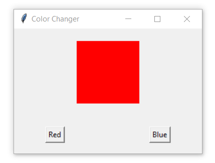 При клике по кнопке «Blue» менять фон квадрата на голубой